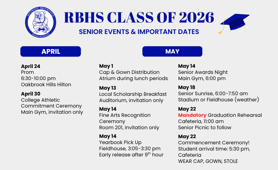 ৩০ এপ্রিল কলেজ ক্রীড়াবিদদের প্রতিশ্রুতি অনুষ্ঠান সময়: সকাল ৭টা – সকাল ৮:৩০টা স্থান: আরবিএইচএস প্রধান জিম - শুধুমাত্র আমন্ত্রিতদের জন্য